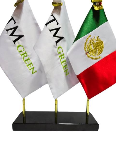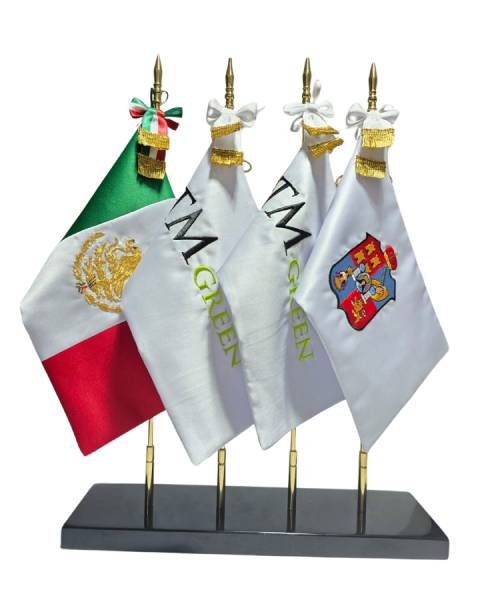 Banderas utilizadas en espacios interiores, fabricadas con tela raso, suave al taco, se utilizan diferentes técnicas.