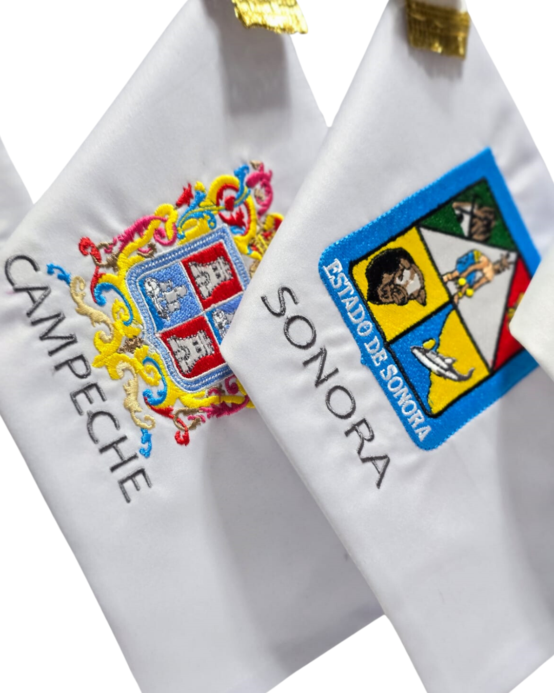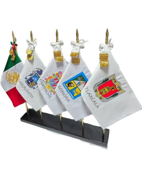 Contamos con varias opciones de productos para escolta, de manera individualo por paquetes: banderas, corbatas (moños), astas, porta banderas, cubre banderas.